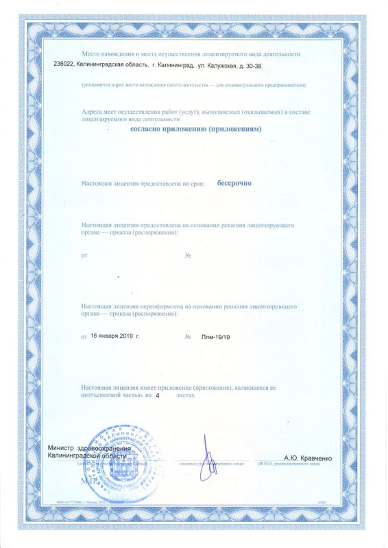 По моему мнению одна из лучших клиник в городе калининграде работают прекрасные специалисты клиника работает как швейцарские часы особенно хочу отметить Великолепного хирурга Брыкач Евгения Леонидовича Крепкого вам ему здоровья и профессионального роста супер молодцы!